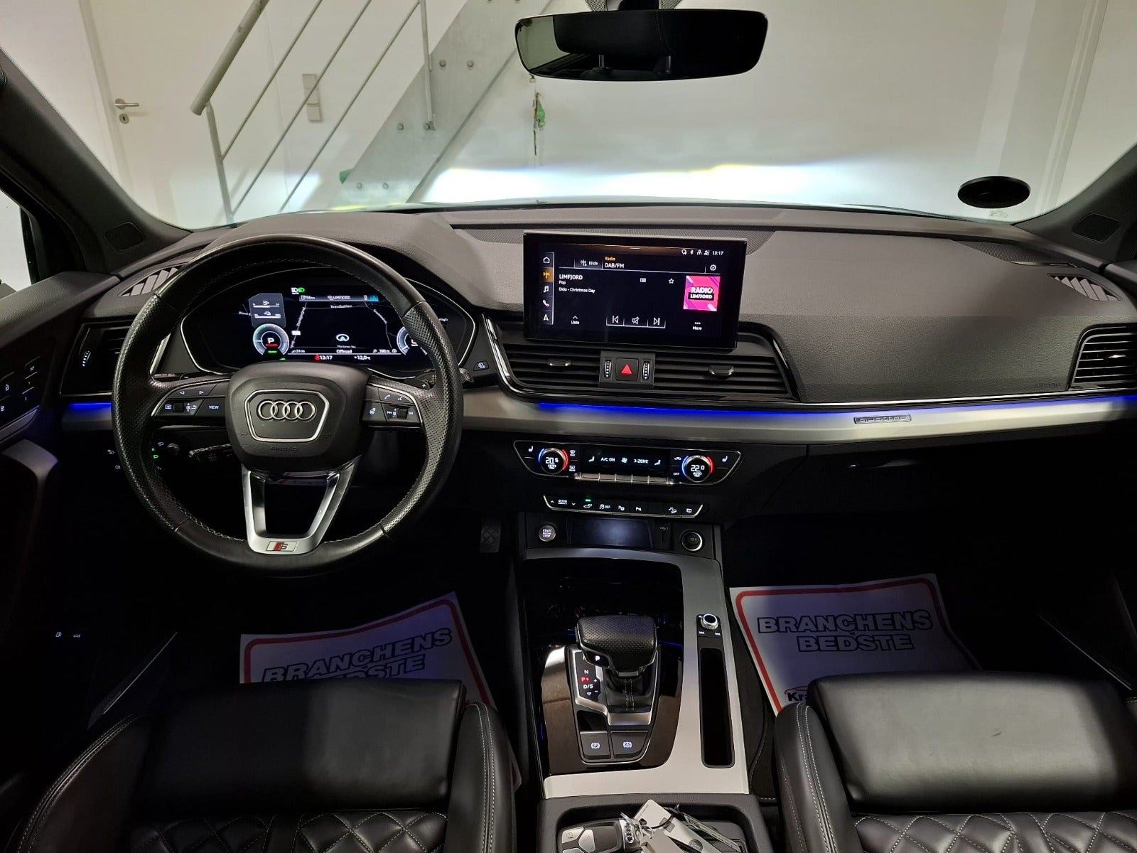 adaptiv fartpilot, el-soltag, glastag, luftundervogn, b&o lydanlæg, headup display, sort optik, carbon spejle, el indst. førersæde m. memory, el indst. rat, varme i rat, 3 zone klima, el betjent bagklap, fuld led forlygter, fjernlysassistent, nøglefri betjening, digitalt cockpit, 360° kamera, sportssæder, navigation, skiltegenkendelse, vognbaneassistent, blindvinkelsassistent, aut., aut.gear/tiptronic, ratgearskifte, elektrisk kabinevarmer, fjernb. c.lås, fartpilot, kørecomputer, infocenter, startspærre, auto. nedbl. bakspejl, udv. temp. måler, regnsensor, sædevarme, 4x el-ruder, el-spejle m/varme, automatisk parkerings system, bakkamera, parkeringssensor (bag), parkeringssensor (for), automatisk start/stop, dæktryksmåler, adaptiv undervogn, elektrisk parkeringsbremse, træthedsregistrering, dab radio, multifunktionsrat, håndfrit til mobil, bluetooth, trådløs mobilopladning, usb tilslutning, armlæn, isofix, kopholder, læderindtræk, splitbagsæde, læderrat, lygtevasker, automatisk lys, kurvelys, led kørelys, airbag, abs, antispin, esp, servo, automatisk nødbremsesystem, sænket, tagræling, mørktonede ruder i bag