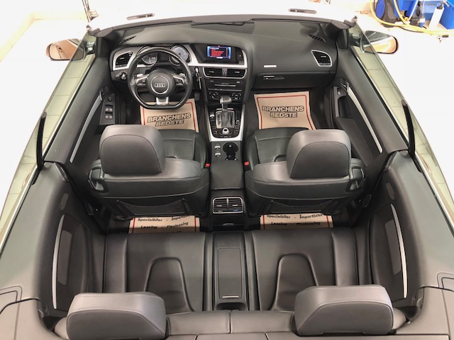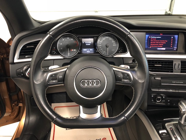 MMI navigation, sort læder, S-Line udstyrs pakke, 2 zonet klimaanlæg, xenon lygter, 20″ alufælge, el-sæder, sports sæder, komfortnøgle, park assist for og bag, fartpilot, bluetooth media, bluetooth telefon, opvarmelige sæder, S-Line multifunktions læderrat med paddle shift, regnsensor, el-indklapbare sidespejle med varme.