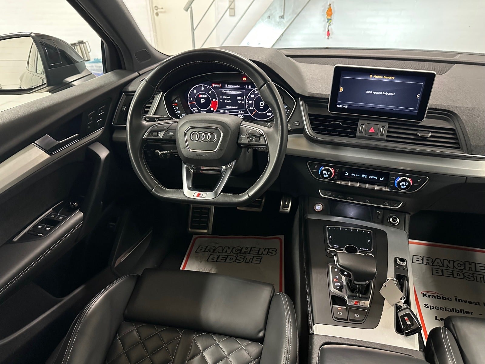 adaptiv fartpilot, el-soltag, glastag, svingbart træk (elektrisk), luftundervogn, b&o lydanlæg, ambiente belysning, el indst. førersæde m. memory, massage sæder, 3 zone klima, motorkabinevarmer, nøglefri betjening, el betjent bagklap, digitalt cockpit, headup display, fuld led forlygter, fjernlysassistent, bakkamera, skiltegenkendelse, vognbaneassistent, blindvinkelsassistent, 20″ alufælge, aut., aut.gear/tiptronic, ratgearskifte, airc., fuldaut. klima, fjernb. c.lås, fartpilot, kørecomputer, infocenter, startspærre, auto. nedbl. bakspejl, udv. temp. måler, regnsensor, sædevarme, 4x el-ruder, el-spejle m/varme, parkeringssensor (bag), parkeringssensor (for), automatisk start/stop, dæktryksmåler, adaptiv undervogn, elektrisk parkeringsbremse, dab radio, navigation, multifunktionsrat, håndfrit til mobil, bluetooth, apple carplay, trådløs mobilopladning, usb tilslutning, armlæn, isofix, kopholder, læderindtræk, splitbagsæde, læderrat, el komfortsæder, sportssæder, lygtevasker, automatisk lys, kurvelys, led kørelys, airbag, abs, antispin, esp, servo, automatisk nødbremsesystem, tagræling, mørktonede ruder i bag, diesel partikel filter