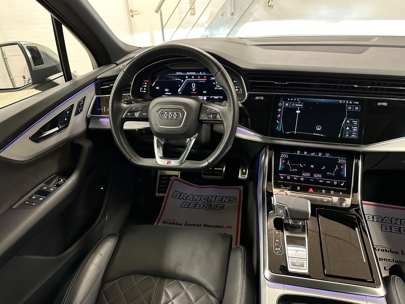 adaptiv fartpilot, el-soltag, glastag, svingbart træk (elektrisk), firehjulsstyring, luftundervogn, diamantsæder, klimasæder, el indst. førersæde m. memory, digitalt cockpit, headup display, 360° kamera, el betjent bagklap, fuld led matrix forlygter, fjernlysassistent, skiltegenkendelse, vognbaneassistent, blindvinkelsassistent, motorkabinevarmer, 2 zone klima, 22″ alufælge, aut., aut.gear/tiptronic, ratgearskifte, airc., fuldaut. klima, fjernb. c.lås, nøglefri betjening, fartpilot, kørecomputer, infocenter, startspærre, auto. nedbl. bakspejl, udv. temp. måler, regnsensor, sædevarme, 4x el-ruder, el-spejle m/varme, bakkamera, parkeringssensor (bag), parkeringssensor (for), automatisk start/stop, dæktryksmåler, adaptiv undervogn, elektrisk parkeringsbremse, dab radio, navigation, multifunktionsrat, håndfrit til mobil, bluetooth, musikstreaming via bluetooth, apple carplay, trådløs mobilopladning, usb tilslutning, armlæn, isofix, kopholder, læderindtræk, splitbagsæde, læderrat, el komfortsæder, sportssæder, lygtevasker, automatisk lys, kurvelys, led kørelys, airbag, abs, antispin, esp, servo, tagræling, mørktonede ruder i bag, diesel partikel filter