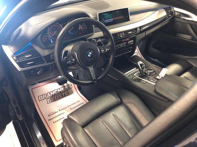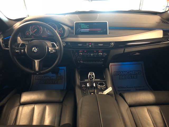 M-Sportspakke, Xenonlys, Navigation professionel, Adaptiv Fartpilot, Sporholder Assistent, PDC for + bag, lyssensor, Regn sensor, Håndfri telefon, El-Bagklap, El-Rat, Glas soltag, Bluetooth, Head-up Display, USB interface, Adaptiv Kurvelys, Multifunktionsrat, El-indst. forsæder m. memory, Sædevarme, aut.gear/tiptronic, Læderindtræk, ISOFIX, Parkeringssensor, Bakkamera, 20″ alufælge, Start/Stop, Kurvelys, Sportssæder i lækkert sort læder, Komfort pakke, Lys-pakke, Klimaanlæg, Harman Kardon Hi-Fi Surround sound,