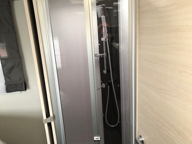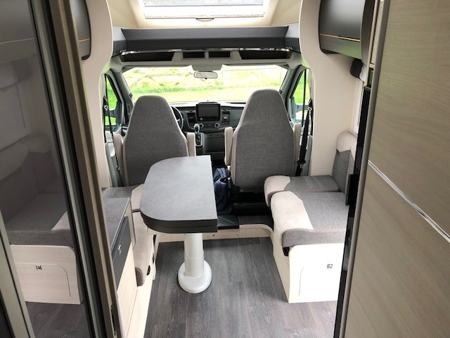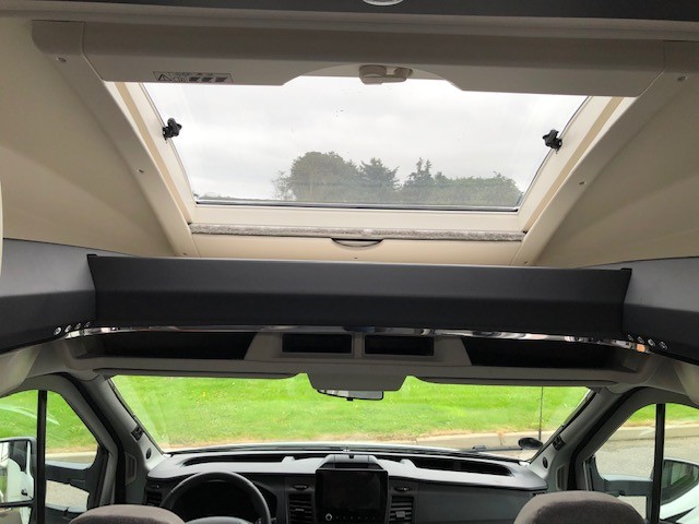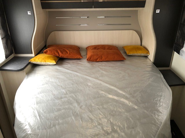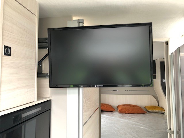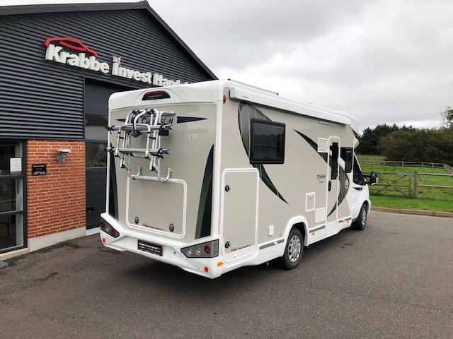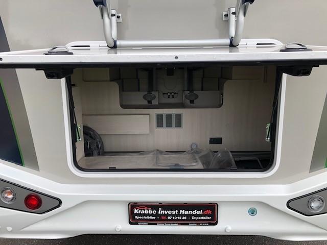 bakkamera, lyssensor, DAB radio, regnsensor, fartpilot, WC, bruser, udebruser, TV, siddegruppe, drejbare forstole, parkeringssensor, bluetooth, Panorama glas topvindue, EURO6d-temp norm, lysautomatik, LED lys, tågelys, stort køleskab m7 fryser, Bi-xenon lys, Markise, cykelstativ,