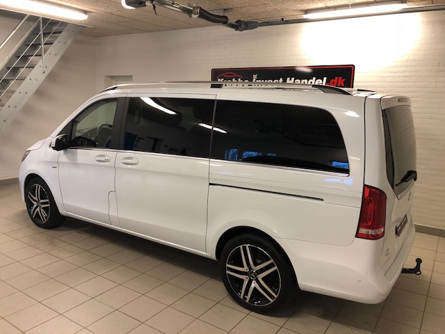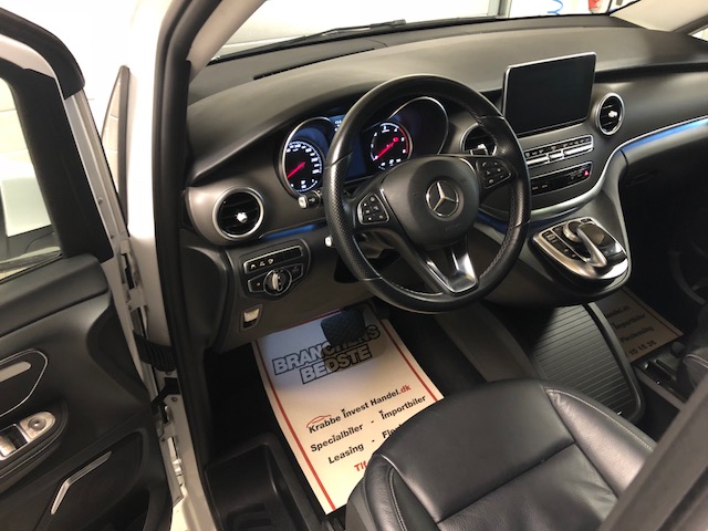 aut.gear/7G-tronic plus, Avantgarde udstyrsvariant, navigation med Comand Online, Distronic Plus (adaptiv fartpilot), parkeringspakke med 360 graders kameraer, Burmester surround-sound system, aktiv parkeringsassistent, lane-keeping assist, døsighedsdetektor, aftageligt træk, tonede bagruder, tagrælinger, læderindtræk (Nappa), sportsundervogn, bak- og sidespejle med auto. nedblænding, Agility Select, tyveribeskyttelsespakke, blind-spot assist, vejskiltgenkendelse, regnsensor, intelligent Light System (LED), el. skydedør, easy-Park bagklap, ikke ryger, lev. nysynet, service ok m.m. 6 sidepladser. 19″ Alufælge,