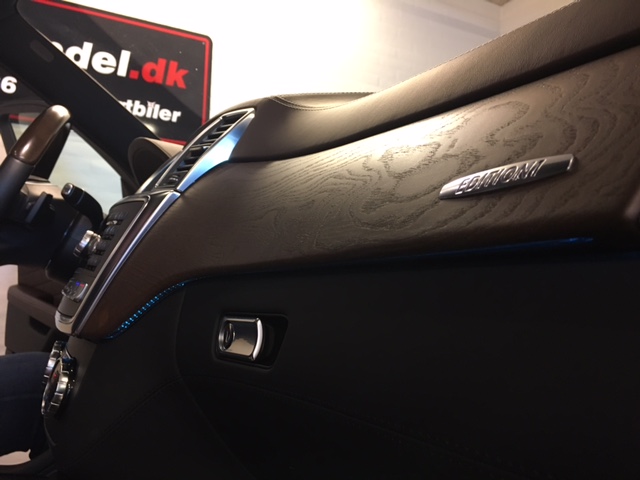 Rød/brun Metal, Designo Exclusive Læder Brun, Harman Kardon Logic7, AMG Pakke, AMG Styling, Airmatic, Ambiente belysning, Comand Navi, Designo Exclusive læder pakke, Sort himmel, Sædevarme for og bag, Alarm, Distronic Plus, Dødvinkel Assist, Sporholde Assist, Aktiv Park Assist, Aut bagklap, Interiørlister i træ, Keyless Go, 3 zonet aut klima, natsyns udstyr, Adaptive Fjernlysassistent, Bi-xenon forlygter, Intelligent Light, Lygtevaskere, 20″ AMG fælge, Media Interface, El-sæder med memory, Memory pakke, Panorama Glastag, Sideairbag bag, Mørke ruder, Klimatiserede sæder for, El-klapbare spejle, Aut nedblændige spejle, Alu trinbræder, Bluetooth, Komfort telefon, Blink i spejle, ESP, El-ruder, Dæktrykkontrol, ABS, ASR.