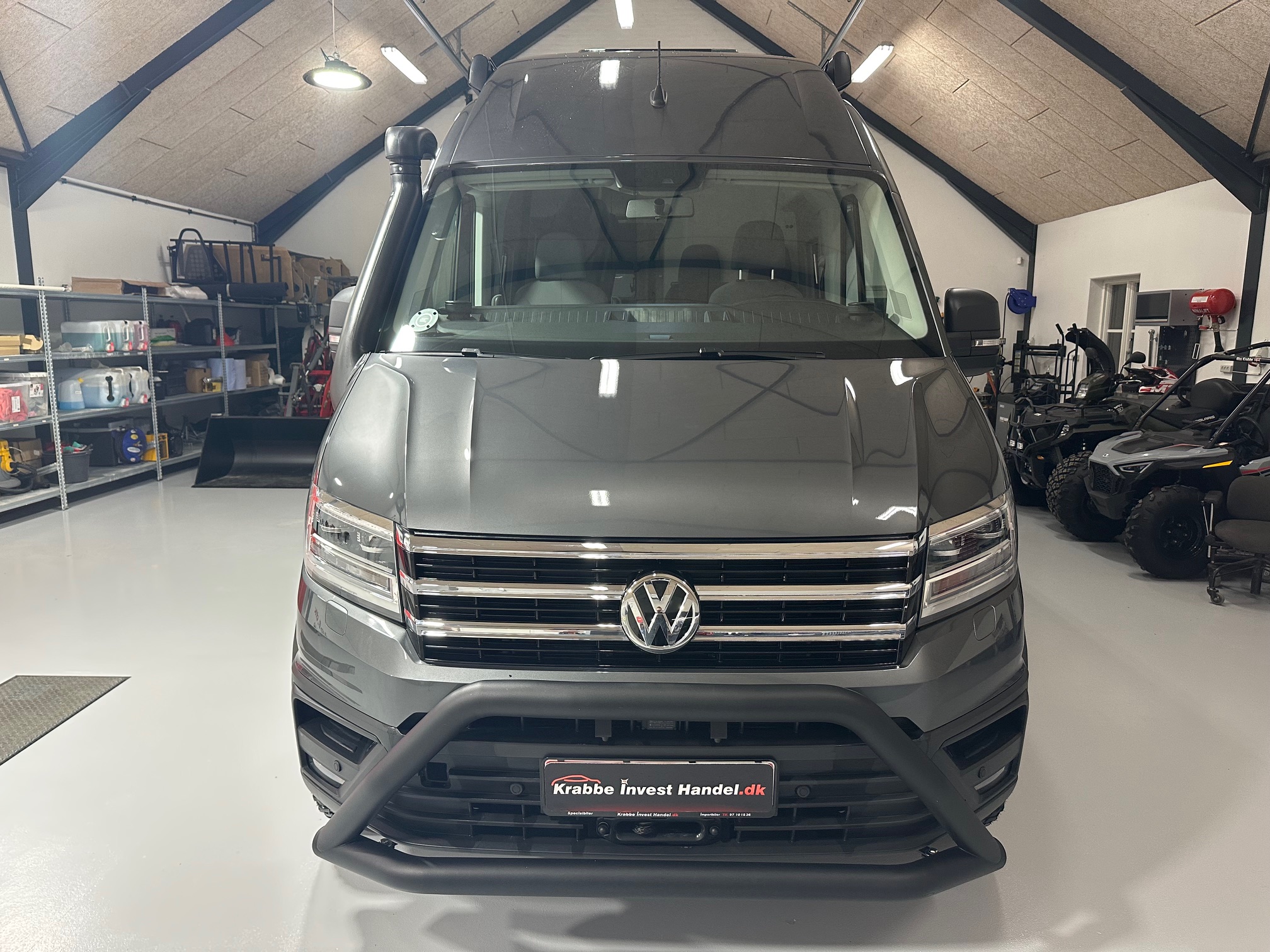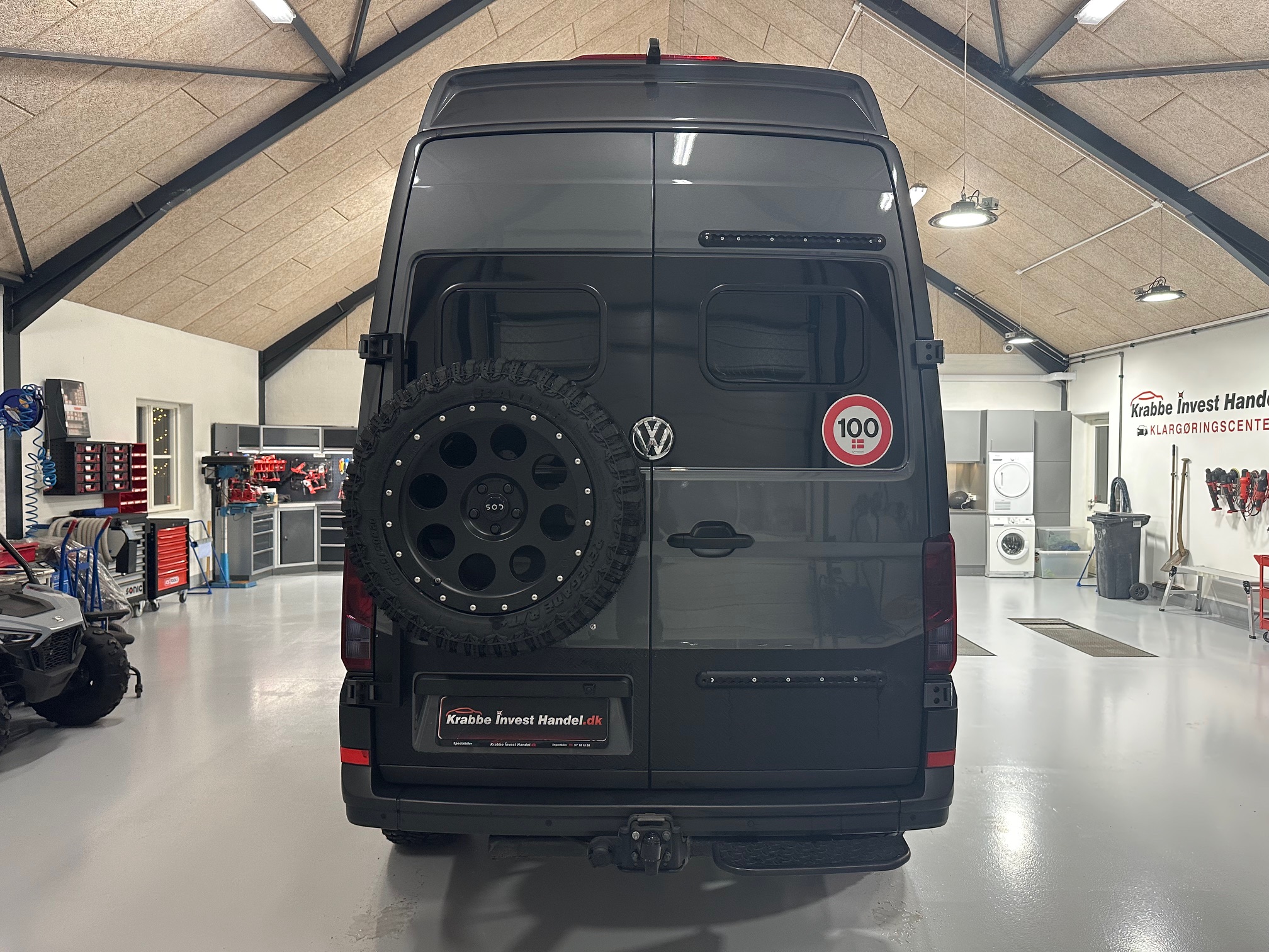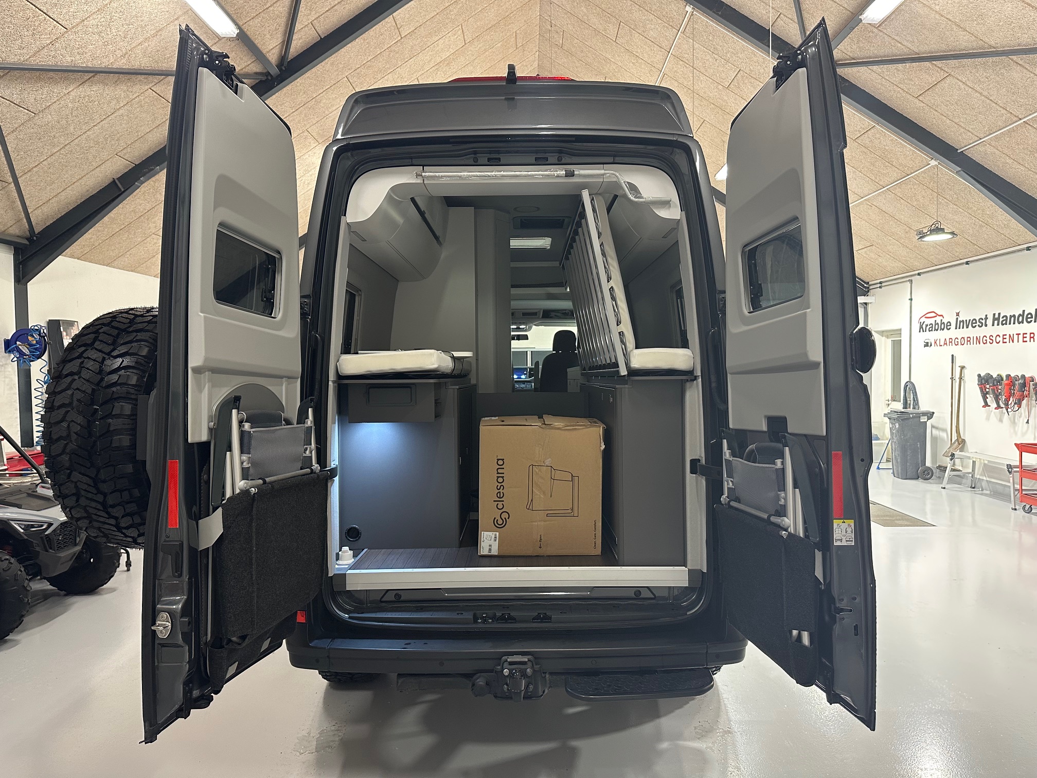 SOD opbygning, adaptiv fartpilot, hævet undervogn, terræn hjul, fuld led forlygter, sandboards, reservehjul, anhængertræk, trinbræt, markise, snorkel, oliefyr, seng, toilet, køkken